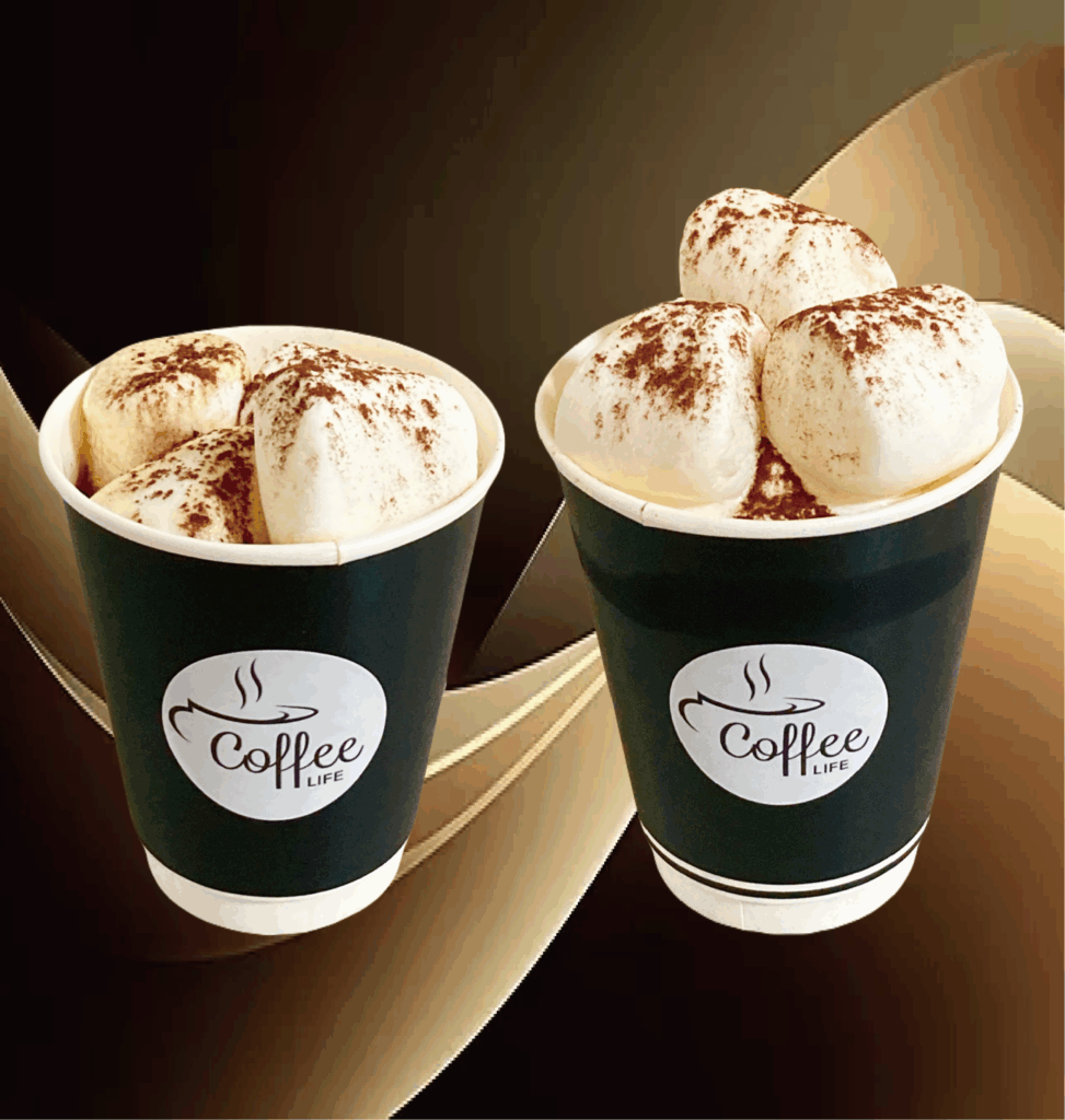 苦めのコーヒーにマシュマロとホイップをトッピングしました。