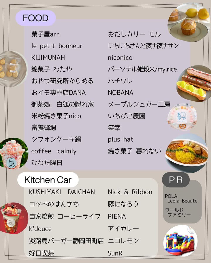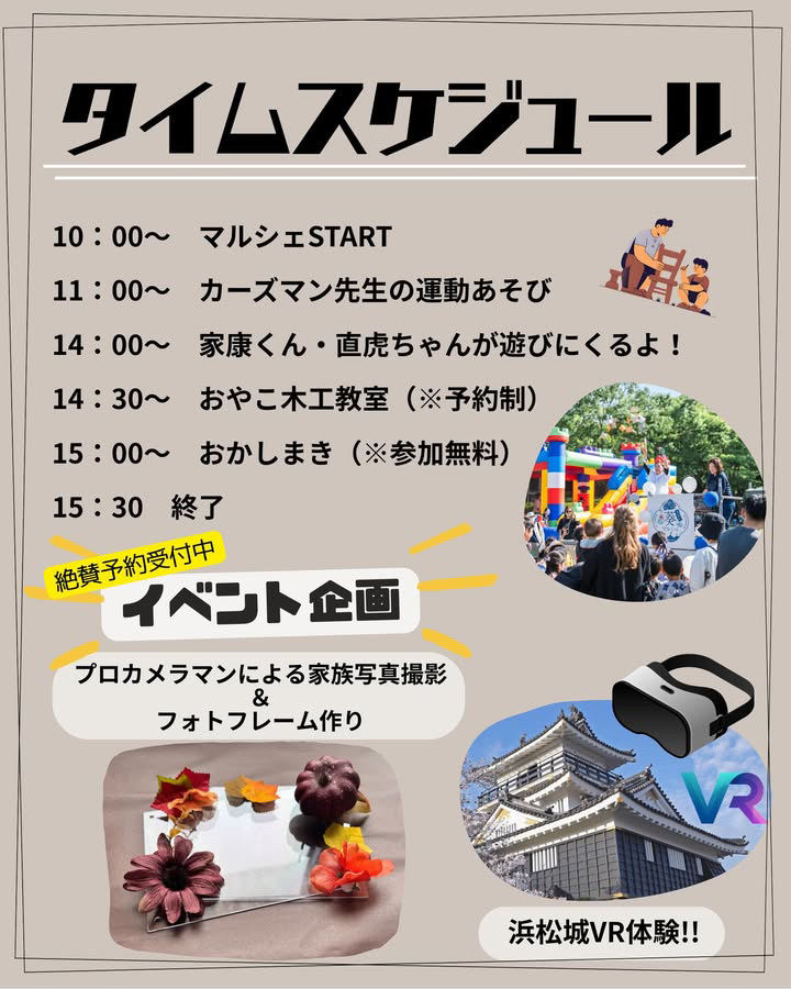葵マルシェ 開催日: 2025年10月12日カテゴリー: 出店一覧 出店日:2025年10月12日(日) 営業時間:10時00分〜15時30分 出店場所:浜松城公園芝生広場 お客様のご来店心よりお待ちしております。