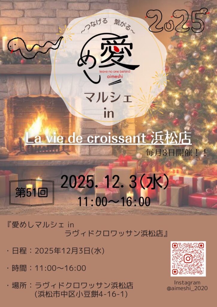 愛めしマルシェ 開催日: 2025年12月3日カテゴリー: 出店一覧 出店日:2025年12月3日(水) 営業時間:11時00分〜16時00分 出店場所:ラヴィドクロワッサン浜松店 お客様のご来店心よりお待ちしております。 ご予約について コーヒー豆のご予約や配達(ご予約の詳細) コーヒーゼリーのご予約も承っております。 ご連絡はInstagramのDMまたはLINEにて。 Instagram LINE
