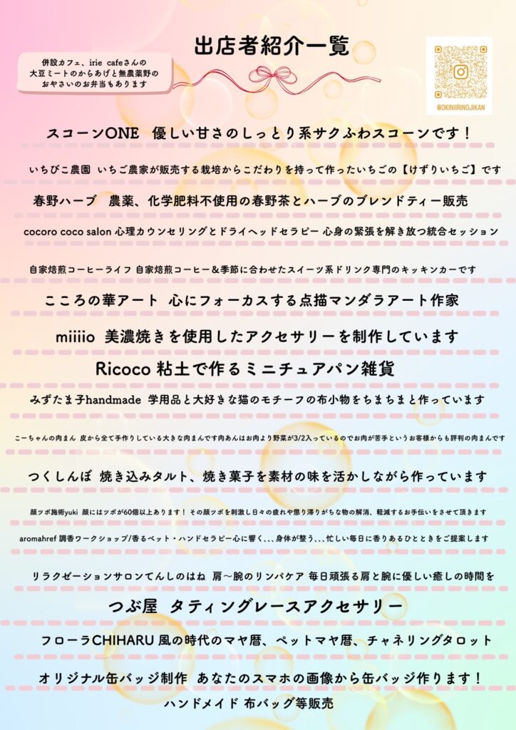 - 出店時間:11時00分〜18時00分(雨天中止)